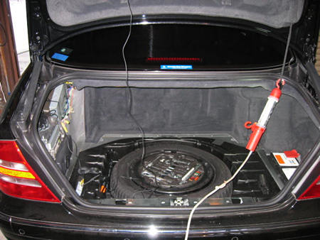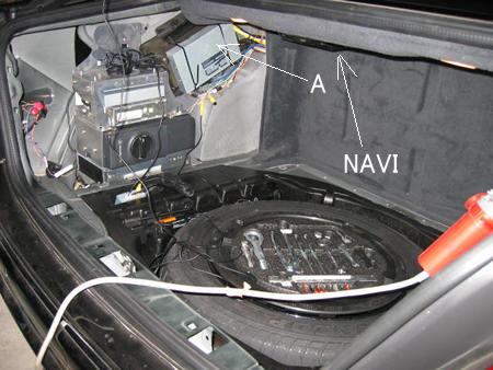 内装を外すのはW124と似ているやり方ですがトルクスが必用でした。 キズ付けないようにトランクの内装を外したらチューナーユニット発見! |