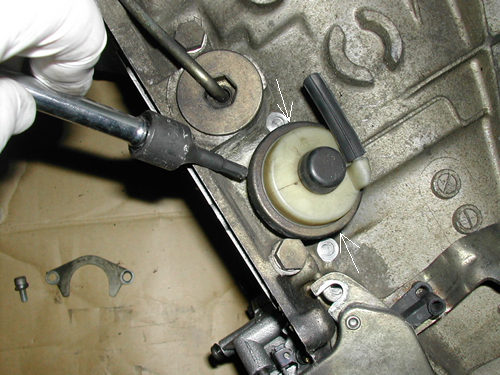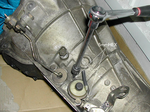5mmのin-hexボルトで固定されています。 まずこの2本を外す。 車載ではスペースが狭く大変そうです。想像ではありますがFXジョイント外しミッションマウントも外しエキパイもはずし、エンジンマウントを緩めれば多少は全体を右に動かせスペースが出来るかもしれません。ATF抜いてからATオイルパン外すと下からのアクセスやりやすいかも・・ |