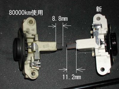 上の画像Dのレギュレーターカットアウト新旧比較 ブラシは2.4mmほどの磨耗