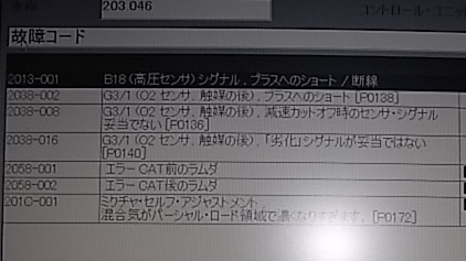 全体を要約するとハーネスからエンジンオイルが入り込み O2センサーを壊した→間違った(薄い)信号がECUに入り濃い方向へ補正学習。