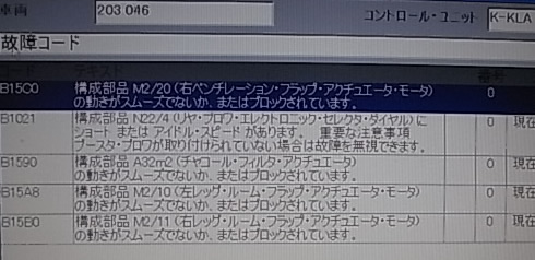 それとは別にエアコンのフラップが動いていないエラーがありました。これは今回目を瞑り(冷房はちゃんと冷えます)エンジンの不調を修理することに集中します。