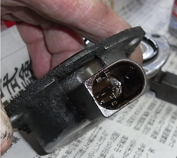 聞く ところによると このタイプはカムのソレノイドからオイル漏れが多いとのこと。早速外してみると・・・