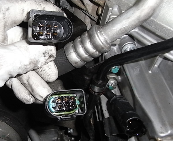 このオイルがO2センサーをだめにしていたように思います。画像は触媒前のO2カプラーですが、触媒後ろのO2カプラーからは更に多くのオイルがたれてきました。