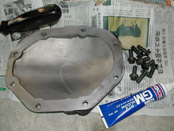 エンドカバーもスクレッパーでガリガリ > オイルストーンで平らに。 ボルト8本はワイヤーブラシでネジ山をキレイニし脱脂しておきました。 |