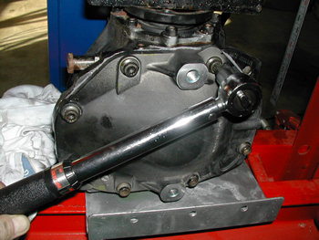 エンドカバー ボルトの締め付けです。対角線を意識しながら締めていきます。 締め付けトルクはフランジのあるボルトの場合30Nmで締めてから 更に45度の角度締めとなっていますが やってみると30Nmで締めた後どうしても45度は回りません。(締めすぎになりそうで・・)ここは最終的に50Nmで締めました。 ここでデフはひとまず完成!