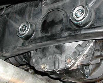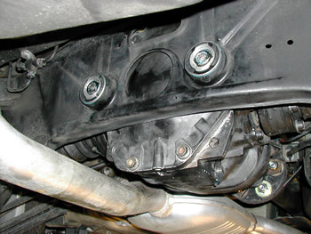 ついにデフの取り付けです。最初は前側のマウントから・・ラバーマウントの上下・ワッシャーの位置に注意し最終的には車体側2面幅17mmのメガネレンチで押さえ下からは8mmHEXで締めます。45Nm |