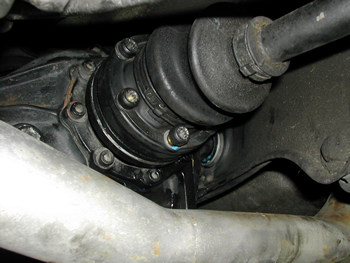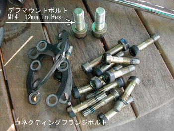 あらかじめボルトをワイヤーブラシで掃除し脱脂しておきました。ここもロックタイト塗布し締めていきます。 ようやくドライブシャフトの取り付けです。
