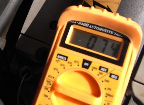74℃でのレベルは白線の位置。この後100mL追加して合計6.5L ATFを入れました。これでレベルはばっちりです。 とにかくATFのレベル調整はシビアですが一歩間違えばとたんにATを壊しますので慎重すぎるくらいが丁度いいと思います。。 |