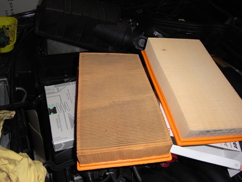 新しいフィルターを取り付けます。 オイルパンパッキンの接触部をきれいに脱脂しゴミが無いかチェックします。 |