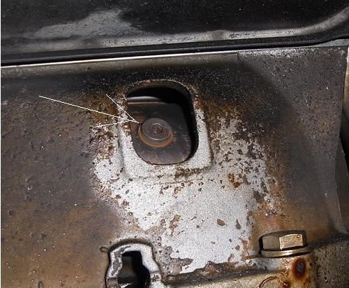 矢印がコンバーターのドレンプラグです。 シールリングは新品にして締め付けは14Nm |