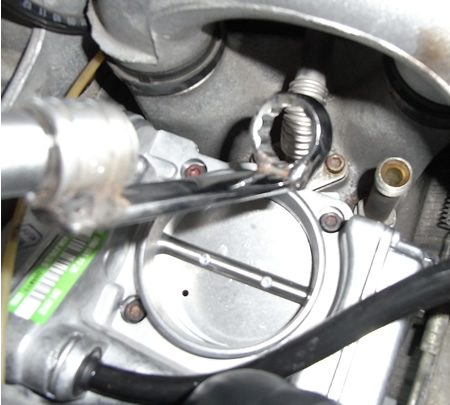慎重に新品のスロットルアクチュエーター取り付け。もう何回も取り付け、外しやっているので早いです。