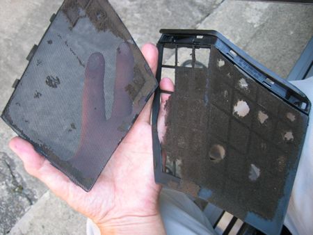 スピーカーグリルにあるスポンジがボロボロなので・・・ このようにメッシュのツメを起し |