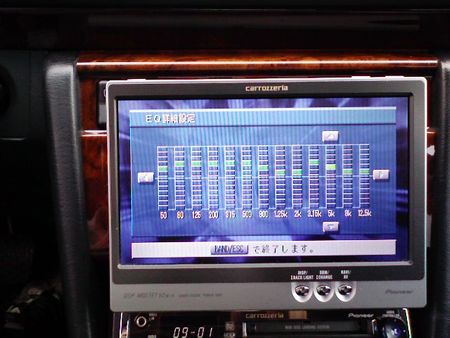 ヘッドユニットの13バンドグライコで音質調整。 Audio★Station REDZONE さんからアドバイスいただきました。 「ダッシュ上12cmスピーカーの低域不足はドアにウーファーがあるのでそのまま。250〜500Hz付近をチョット持ち上げてやると厚みのある中域にかなり800Hz付近の加減では、 ボーカルの厚みが変わります。 このGREENコーンは、割と”おとなしい”音ですので、ツィーターの守備範囲の 3〜4000Hzを持ち上げてやったら、メリハリが利いてくる」とのこと。どうもありがとうございます!