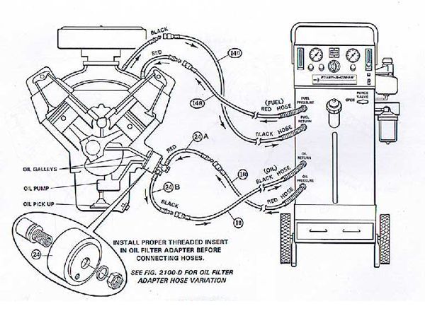 A:はい。下画像を見ていただければわかりますがオイルフィルターがカートリッジ式(M103)の場合はアタッチメントを取り付けオイル循環させながら洗浄します。時々エアーパージしながら効果的に洗浄が可能です。M104はエンジンオイルに直接投入し1200rpmあたりで回しながら洗浄します。1時間ほど回したあと上から吸出し方式でオイルパンの底やフィルターのハウジング底までオイルを吸い新油を入れ新しいオイルフィルターを取り付け完了です。