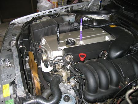 エンジンルーム内部で燃料配管を外し そこに洗浄用ホース取り付けます。M103の場合フーエルデスビとインジェクター。M104はインジェクターがきれいになり燃料の均一な噴射が期待できます。yama号はこれによりアイドリングの振動が減ったのでは?と思っています。