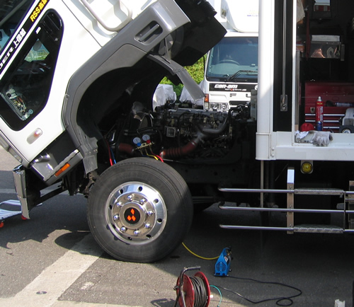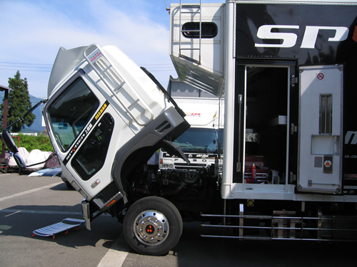 キャビンが前傾するのでサービス性は乗用車よりやりやすいですね。ただエアコンシステムがどこにあるのか探すのに時間がかかりました。
