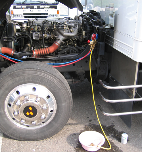2004年式三菱FUSOトラックのエアコン修理 (2009.6 走行160000Km)