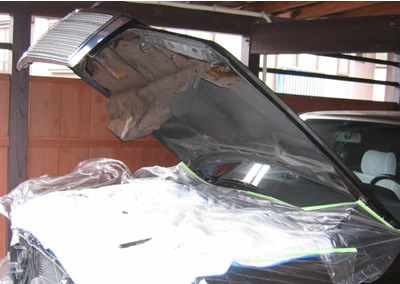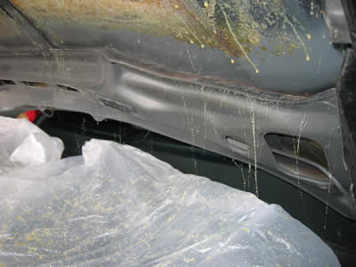 フード裏側はスプレーボンドG17 綿菓子のように垂れ下がりますので養生シートは必須です |