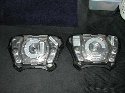 94年のW124エアーバッグ(右)と97年のW210アバンギャルドのエアーバッグ・・同じでした! パーツナンバーも同じです。 |