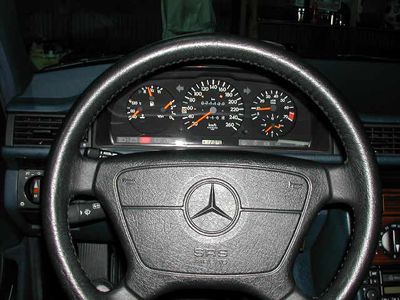 10月のミニオフ 時「GUNさん」のW201に試乗させていただきました。その時付いていたステアリングホイールが「なんか イイ感じ」だったので聞いたところW210の直径390mmの物でした。W124の標準は400mmですがこのわずか10mmの違いは思った以上でハンドル操作もやりやすくなります。自分のはやや テカリ も出ているので程度の良い物を探しました。その後
