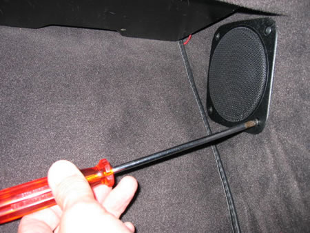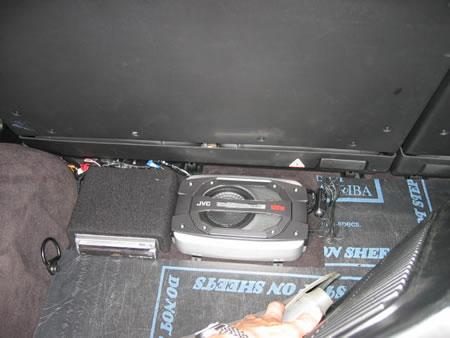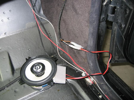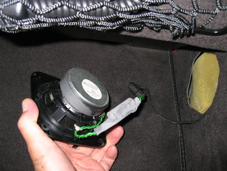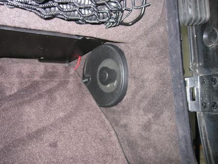 リアピラーのスピーカーは内装も弱く期待が持てませんのでサブウーファーへの分岐信号取り出しのみに使いました。 |