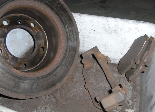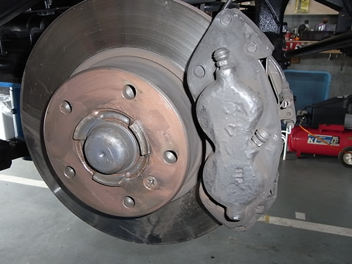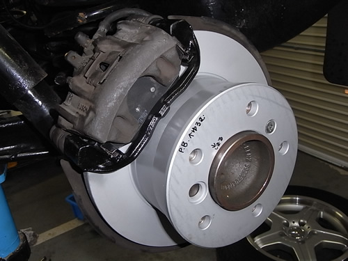 使用限界にちかずいたリアブレーキローターとパッド交換します