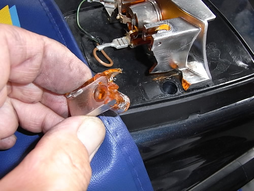 ウインカーを点検したら締めすぎらしく割れていました。接着剤で修理