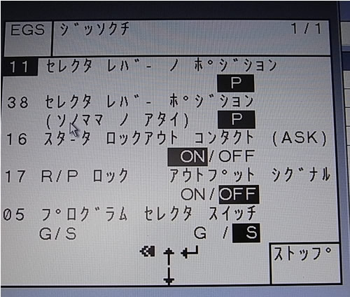 診断機でシフトレバーの位置とEGSでの認識が一致するか確認。セレクターレバーポジションに時々"Z"が表示されます