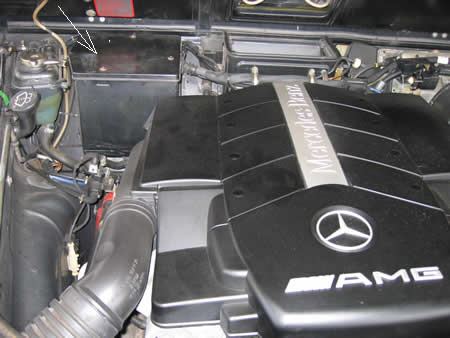 仕事が一段落し駆けつけてボンネットを開けてみた。M113 AMGエンジン 5.5L