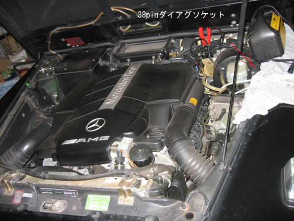 まず原因を切り分けなければいけないので工場にお願いしてDASでの診断をしました。 エンジンルームと38ピンダイアグソケト |