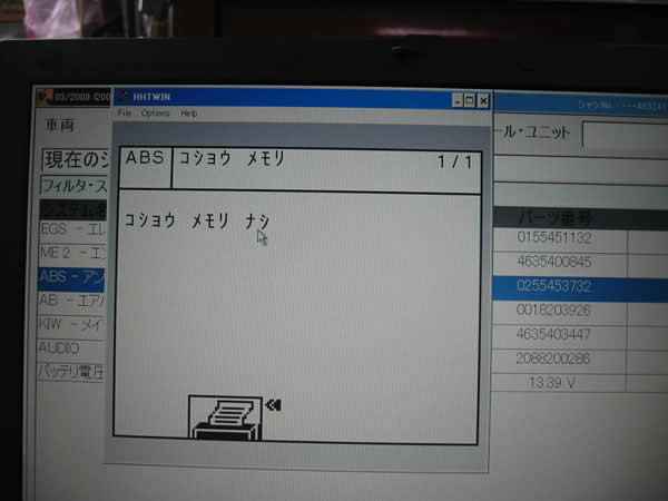 ABSコントロールユニットから入って故障メモリを見る 「コショウメモリ ナシ」 |