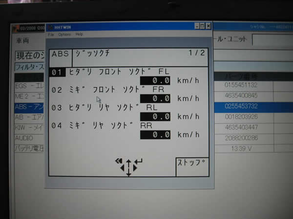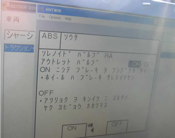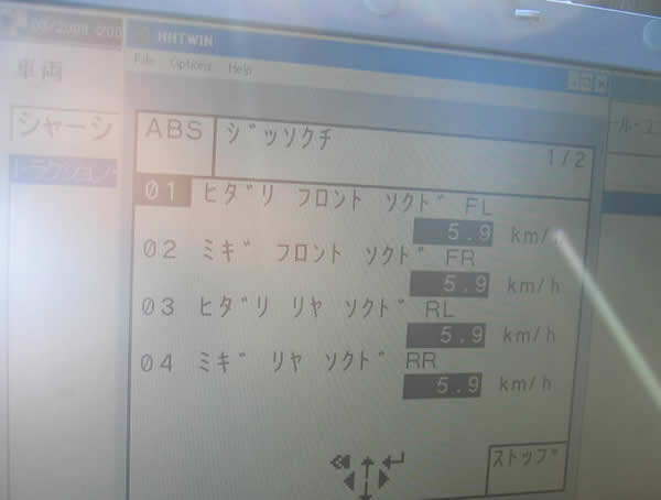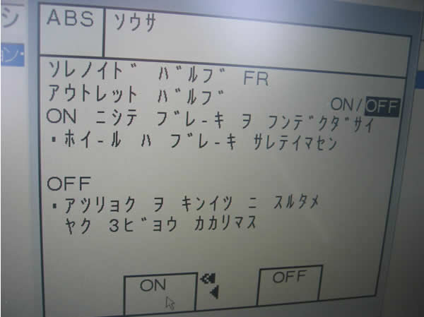 DAS画面からABSハイドロリックユニットの操作を行い作動テストをした |