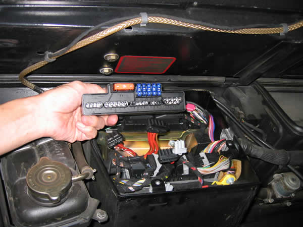 思い切ってDASを積んで走行テストしてもらいました。 まずDASコネクターを繋いでもボンネットを閉めることが出来るよう38ピンコネクター取り付けボルト外しテスター接続。 |