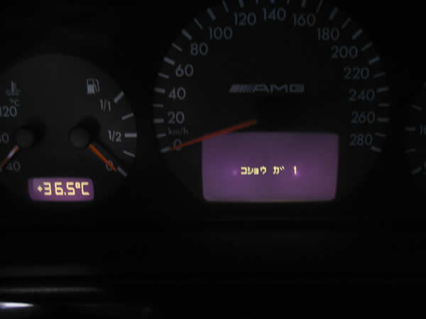 警告灯が点灯したあとエンジン停止すると 「コショウガ1」と表示 |