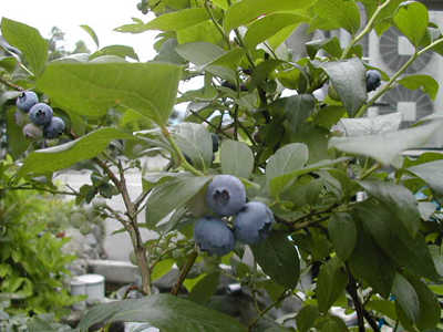 ブルーベリー:ツツジの仲間なので酸性土壌を好みます。鹿沼土とピートモスを混ぜ合わせた用土で栽培するといいでしょう。畑に植える場合はピートモスを十分しきこみます。耐寒性のある品種ならば北国でも十分栽培可能です。春にはスズランににて白い花・初夏から実を付け秋には紅葉と一年中楽しめます。2品種を隣に植えることで実の付きが良くなります。 収穫が多いときはジャムやブルーベリーソースを作ります。作り方はこちら |