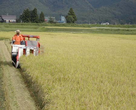 稲刈り風景:魚沼産塩沢コシヒカリです。 今スポーツ選手の間で話題の5分つき玄米ごはんですが このお米なら味もよく毎日でも食べることが出来ます。 |