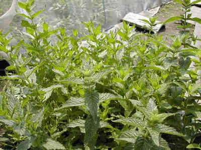 ペパーミント:シソ科 耐寒性多年草 切って花瓶にさすだけですがすがしい香りが楽しめます。デザートのワンポイントにも欠かせません。繁殖力が旺盛なので10号ほどの鉢に植えたのを畑に埋めます。そうしないと横にドンドン広がりすぎて他の植物に勝ってしまいます。 切り戻せば次々と新しい芽が出ます。 |
