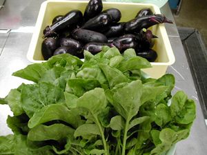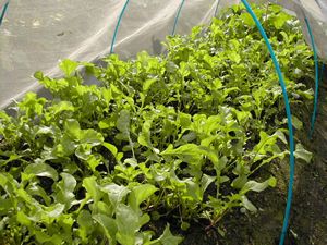稲刈りが終わる頃 畑では秋の野菜が多く収穫出来る季節となります。 香りがいい「ルッコラ」 奥は「長ナス」 |