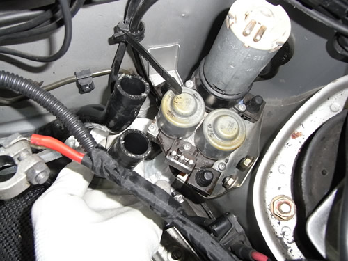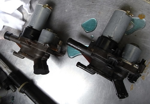 ヒーターバルブはLHDの場合バッテリーの前にありエンジンからのLLCがヒーターコアへ流れ、その出口に運転席、助手席2系統に分かれ左右独立して丼棒の温度を調整する機能です。これの動きが悪いと暖房が効かなかったり真夏に冷房しても熱い風がでたりします。