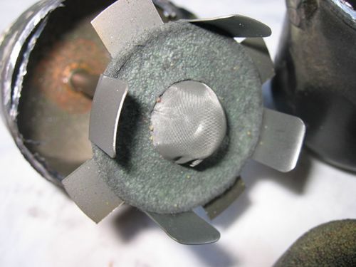 コンデンサーで冷やされ液体となった冷媒がここを通過 「naka@16V」さんもバラした画像を公開していますが、そちらのコメントには R-12だった時代は活性炭が入っていて寿命が来ると内部で崩れエキパンを詰まらせるということを聞いたことがありますがこのタイプならそうゆう心配はいらないように感じました。 |