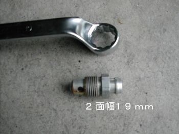 撮影のため外したドレンボルト 先端にホース付けるようになっています |