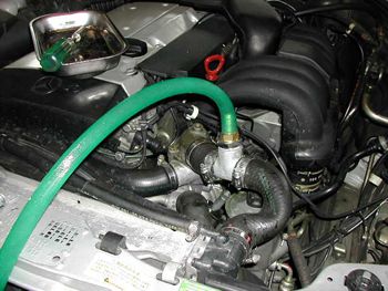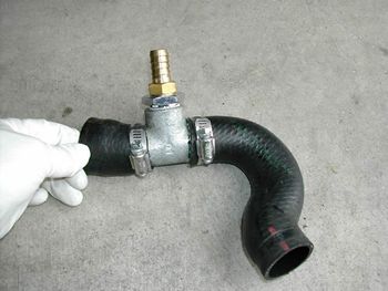 これを取り付けラジエターキャップは外したままラジエターのドレンをゆるめEXタンクからあふれない程度に水量を調整し2000RPMで5分ほどエンジンを回した その後再び2箇所のドレンから水を抜く |