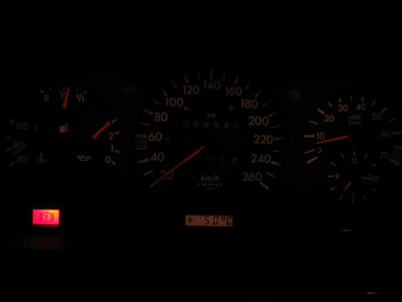 例年より大幅に雪が少ない1月30日。17:00ころ走行中あたりが暗くなってきたのでヘッドライトを点灯したところメーター照明が暗いことに気づく。突然の出来事にちょっと動揺・・・(冷や汗)