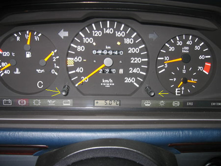 恐る恐るSW入れたらぼんやりと点灯!(^^) この状態でエンジンキーを抜いてみたら警告ブザー鳴ったが音が連続しないしメーター照明も明るさがフラフラと。
