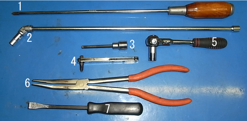 スロットルアクチュエータを外すToolです。このほかに落としたボルトなどを拾うマグネットがあるといいです。