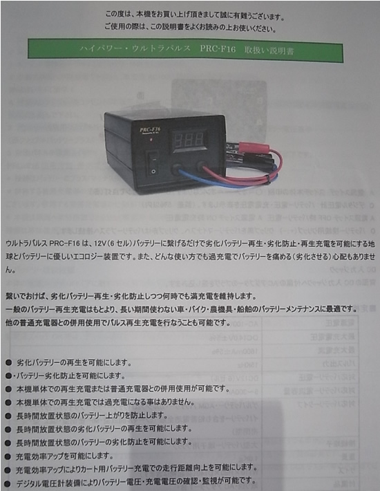 PRC-F16という機種をためしに購入。早速10年経過し能力が30%低下したバッテリーを再生充電してみます。