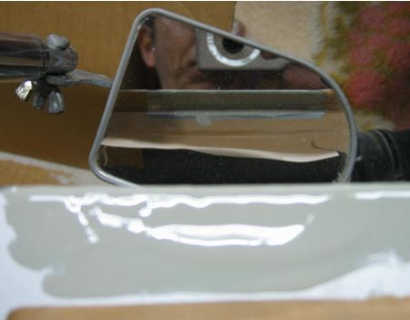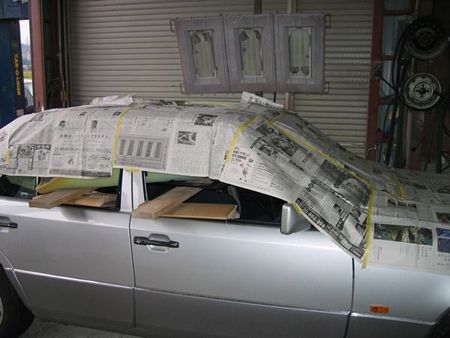 地肌がでたところで素早くサビ止め(ハケ塗りでサフェーサー塗布) ここからはプロにお願いしました。 |