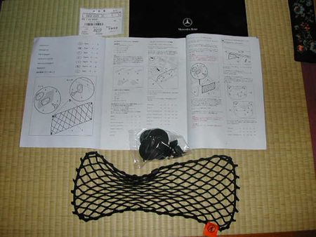 以前ジャーマンカーズに出ていた純正のラゲッジネットを取り付けました。助手席エアーバックでグローブボックスもなく小物入れが少ない私の94年E280には重宝しそうです。