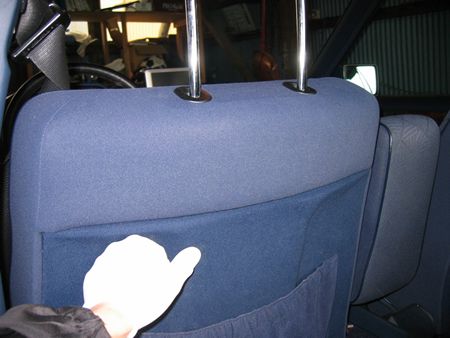 ヘッドレストを一番上に上げてから親指の部分にあるところを押すとヘッドレストが上に抜けました。 |