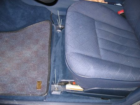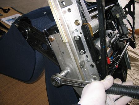 スライドレールの固定ボルトも外し後方に引けばOK これはシートベルトのキャッチ側に嵌っています |